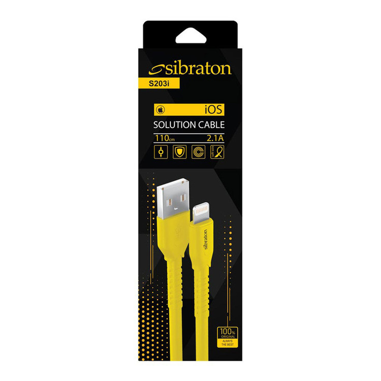 کابل شارژ آیفون Sibraton مدل S203i با طول 1.1 متر با کیفیت و کوالیتی بالا با رابط USB به لایتنینگ جهت شارژ کردن و انتقال اطلاعات از انواع گوشی های شرکت اپل (آیفون، آیپد، آیپاد و …) با حداکثر شدت جریان 2.1 آمپر توانایی شارژ انواع تبلت را نیز دارد. همان طور که میدانید سیم شارژر های اپل دارای کانکتور Lightning با 8 پین استفاده از فولاد بدون درز و روکش از جنس PVC با خاصیت ارتجاعی و مقاومت خوبی در برابر پیچیدگی و پارگی و همچنین استفاده از سیستم محافظت در مقابل ولتاژ بیش از حد مجاز سبب میشود از گوشی یا تبلت، پاوربانک و یا هر دستگاهی که به وسیله این کابل در حال شارژ شدن باشد به خوبی محافظت کند.