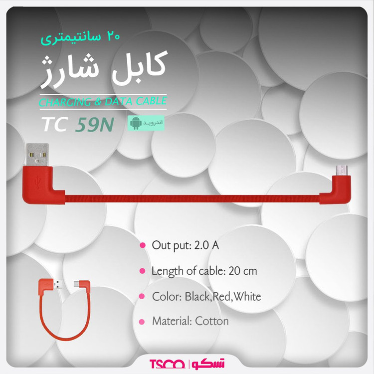 کابل شارژ و دیتای اندروید 20 سانتی تسکو MINI CABLE CHARGING TSCO TC-59N محصولی از این شرکت ایرانی است.