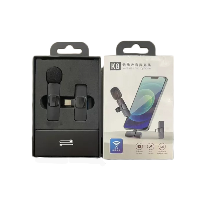 یکی از با کیفیت ترین میکروفون های وایرلس بازار مدل k8 است که قیمت نسبتا پایین و همچنین کیفیت بسیار بالایی است که در دو نوع تایپ سی و آیفون در بازار موجود است و به فروش می رسد.میکروفون های یقه ای بی سیم نسبت به نسل پیشین خود (سیم دار)درای استفاده ی راحت تری است.در کل این میکروفون برای تولید محتوا برای اینستا و یوتیوب بسیار کاربردی است و می توان یکی از دلایل رشد را استفاده از این میکروفون دانست.روش استفاده از این میکروفون بسیار آسان است که می توانید به راحتی از آن استفاده و کنید.همچنین میکروفون K8 دارای برد 20 متر است که کاربرد آن را چندین برابر کرده است.امیکروفون نویز گیر است و دارای کیفیت صدای بسیار عالی است.