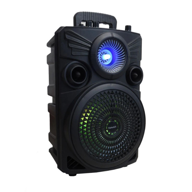 اسپیکر بلوتوثی قابل حمل گلکسبیت مدل GS21 اسپیکرهای بلوتوثی با هر وسیله الکترونیکی به صورت بلوتوثی ارتباط برقرار می کنند و برای پخش موسیقی از دستگاه دیگر استفاده می کنند. از اسپیکرهای قابل حمل برای استفاده در فضای باز مانند پارک، ساحل و …. به راحتی می توان استفاده کرد. اسپیکر جدید گلکسبیت GS21 به دلیل کیفیت صدای خوب، ظاهر جذاب با رقص نور و قیمت مناسب برای کاربردهای مختلفی قابل استفاده می باشد. به همین دلیل خرید اسپیکربلوتوثی گلکسبیت GS21 مورد توجه مشتریان زیادی قرار گرفته است. اسپیکر مهمانی GS21 در ابعاد 230x190x350 میلی متر طراحی و تولید شده است. GS21 از طریق بلوتوث، شیار کارت حافظه micro SD، درگاه USB و جک 3.5 میلی متری به موبایل، لپ تاپ و دستگاه های دارای بلوتوث متصل می شود. انرژی و منبع مورد نیاز اسپیکر GS21 توسط باتری لیتوم یونی 1500mAh تامین می شود که با یک بار شارژ قابلیت پخش مداوم 6 ساعت موسیقی را دارد.