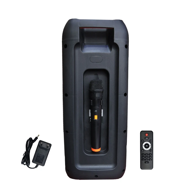 اسپیکر حرفهای PartyBox RS-D32 جدیدترین مدل از اسپیکرهای سری پارتی باکس از کمپانی معتبر تلاش می باشد. شما میتوانید از این سیستم صوتی در دو حالت برق یا باتری استفاده کنید. درایورهای حرفهای این اسپیکر و دو باند 8 اینچ صدای موسیقی را با وضوحبالا و بیس قدرتمندی پخش میکنند و باعث افزایش هیجان مهمانی شما میشوند. کانکشنهای پرکاربرد به شما امکان اتصال آسان به دو صورت بیسیم و باسیم را میدهند تا بتوانید با هر دستگاهی بهراحتی به این سیستم صوتی متصل شوید و موسیقی دلخواه خود را بشنوید. برای اتصال به PartyBox RS-D32 کافی است بلوتوث موبایل یا تبلت خود را روشن کنید، اسپیکر را جستجو کرده و متصل شوید. میتوانید آهنگهای موردعلاقه خود را در یک فلش مموری بریزید و از طریق پورت USB به اسپیکر متصل کرده و پخشکنید. همچنین میتوانید توسط کابل AUX دستگاه خود را از طریق ورودی 3.5 میلیمتری به اسپیکر متصل کنید. حالا فقط دکمه پخش را فشار داده و آماده شنیدن موسیقی با صدای با کیفیت و فوق العاده شوید.در کنار تمام این قابلیت ها شما میتوانید با استفاده از قابلیت TWSدواسپیکر D32 را به طور همزمان متصل کرده و از موزیک مورد علاقه خود به صورت استریو لذت ببرید . همچین میکروفون های بیسیم و دیجیتال همراه با اسپیکر علاوه بر کیفیت بسیار بالا شامل 4 صدای مختلف میباشد که بازی خوانندگی (کارءوکه)را بسیار جذاب و سرگرم کننده میکند