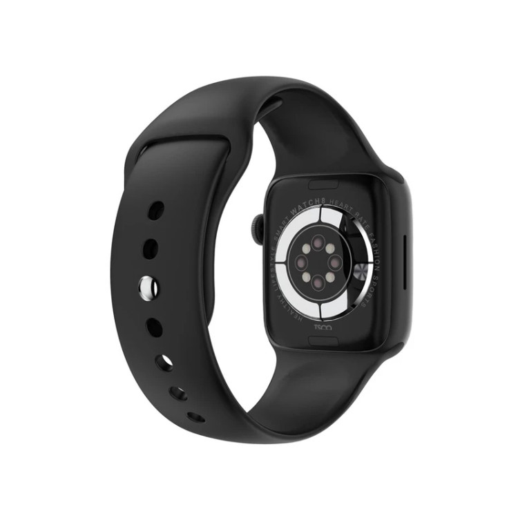 از ویژگیهای متفاوتی که این ساعت هوشمند تسکو دارد طراحی مربعی آن است که مشابه ساعتهای سری 8 اپل است. با نمایشگری چهارگوش به ابعاد 2 اینچ و از نوع TFT واضحترین تصاویر را به شما نمایش خواهد داد. رزولوشن این نمایشگر به 320×385 رسیده و جنس خود ساعت از آلیاژ زینک و IML ساخته شده است. در قسمت بند ساعت 21.5 میلیمتری تسکو از متریال سیلیکون استفاده شده تا راحتی حداکثری برای کاربر فراهم شود. همچنین گواهینامه IP67 نیز در آن رعایت شده تا در برابر گرد و خاک و آب به عمق 1 متری به مدت نیم ساعت مقاومت داشته باشد. نوع شارژر آن وایرلس بوده و با ابعاد کلی 49×43×11.5 کاملاً استاندارد روی مچ شما قرار میگیرد و برای انواع مچ دست مناسب است. وزن ساعت TSW 8 PRO MAX برابر 46 گرم بوده و عملاً وزن آن احساس نمیشود. این ساعت زیبای تسکو در سه رنگ جذاب طلایی، نقرهای و مشکی به بازار عرضه شده که برای انواع سلیقهها مناسب است. اقلام همراه برای این محصول بند، شارژر وایرلس، دفترچه راهنما و جعبه بوده که میتوانید از آنها به نحو احسن استفاده کنید. ساعت حرفهای TSCO با قابلیت اتصال به بلوتوث میتواند تا ساعتها امور روزانه و زمان شما را مدیریت کند. چیپست استفاده شده در این ساعت از نوع RTL8762DK بوده و برای اینکه ساعت شما کند نباشد و همه فرآیندها را به موقع انجام دهد مناسب است. ورژن بلوتوث این ساعت 5 بوده و اتصال شما بدون قطعی انجام میشود. با هر دو سیستم عامل IOS و اندروید میتوانید به این ساعت متصل شده و لذت ببرید. سنسوری که برای سنجش پارامترهای سلامتی از جمله سطح اکسیژن خون، ضربان قلب، ECG، فشار خون و... در نظر گرفته شده از نوع BD1662 بوده و برای قدم شمار و موارد دیگر سنسور STK8321 وارد عمل میشود. قابلیت کنترل موسیقی و دوربین روی این ساعت قرار گرفته و بیش از 150 حالت ورزشی را با استفاده از این ساعت میتوانید پوشش دهید. با TSW 8 PRO MAX نگران اعلانهای SMS و فضای مجازی نباشید. همگی را روی این ساعت دریافت خواهید کرد. با توجه به اینکه از زبان فارسی نیز پشتیبانی میکند برای افرادی که با زبان انگلیسی راحت نیستند نیز کار کردن با آن راحت خواهد بود. ابزارهای مختلف مانند قطبنما، ماشین حساب و ... را روی این ساعت خواهید داشت.