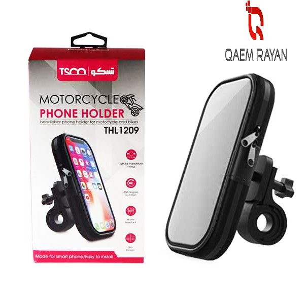 مناسب برای بستن روی موتور سیکلت و دوچرخه, قابل نصب روی فرمان با حداکثر قطر 27 میلیمتر, قابلیت چرخش 360 درجه, دارای یک کیف زیپ دار با ابعاد 165 × 82 × 25, دارای طلق در قسمت جلوی کیف, جنس کیف از چرم مصنوعی