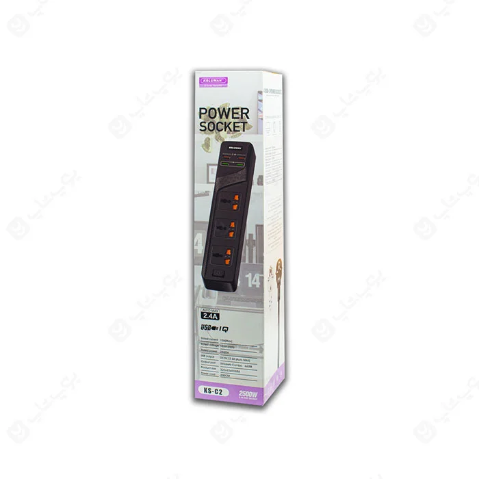 برند کلومن از محصولات مطابق با استاندارد های جهانی تولید شوند. امروزه با پیشرفت تکنولوژی و بالا رفتن تعداد محصولات، نیاز به پریز و خروجیهای برق بیش از قبل در هر خانهای احساس میشود. شرکت کلومن با ساخت چند راهیهای محافظ برق مجهز به پورتهای شارژ USB هوشمند نیاز استفاده از چندین شارژر و پریز برق را برطرف کرده تا محل زندگی یا میز کار شما مرتب تر و زیباتر دیده شود و دسترسی شما برای شارژر دستگاههای مختلف آسوده تر گردد. چندراههی KS-C۲ یکی از این محصولات جدید کلومن است که سه عدد پریز دارد و با دوشاخه یا سهشاخههای تمام نقاط جهان سازگار است. روی این چندراهی، ۴ پورت USB تعبیه شده است. با استفاده از این پورتها میتوانید توسط کابل USB به صورت همزمان تبلت، گوشی موبایل، دوربینهای دیجیتال و دیگر دستگاههای برقی را شارژ کنید. شدت جریان خروجی پورت برابر با ۲٫۴ آمپر است (مانند گوشی های موبایل ُ تبلت و …) را با سرعت بیشتری شارژ کنید. همچنین از دستگاه شما در برابر شدت جریان و ولتاژ اضافی ، اتصال کوتاه و … محافظت میکند. گفتنی است بدنهی این چندراهی از جنس پلاستیک با کیفیت بالا ساخته شده . طول کابل برق آن ۲ متر است که این متراژ به صورت استاندارد بوده و به راحتی می توانید در مکان هایی که امکان وصل کردن دستگاه به صورت مستقیم به پریز وجود ندارد و یا تعداد بیشتری به پریز و درگاه یو اس بی نیاز دارید از این وسیله می توانید استفاده کنید.