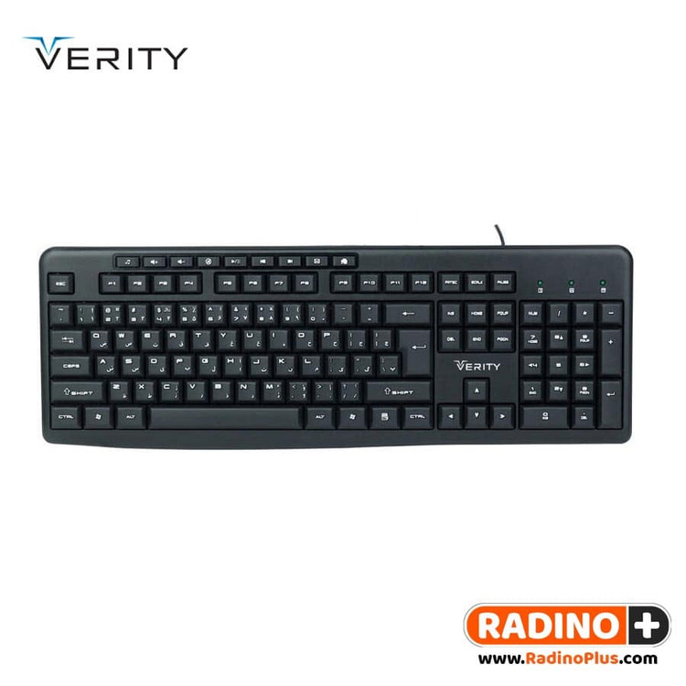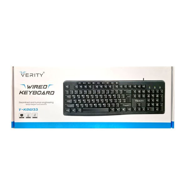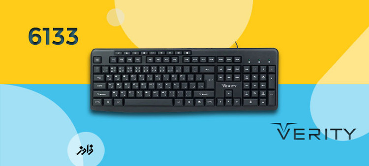 کیبورد سیم دار VERITY مدل 6133 دارای طراحی زیبا و جذاب و درعینحال ارگونومیک است که میتواند برای مصارف خانگی و اداری گزینهی مناسبی باشد. ابعاد کیبورد 6133 440x155x25 میلی متر و طول کابل آن 1500 میلی متر می باشد . تعداد کلیدهای این کیبورد 104 عدد و عمر آن 8.000.000 بار می باشد.
