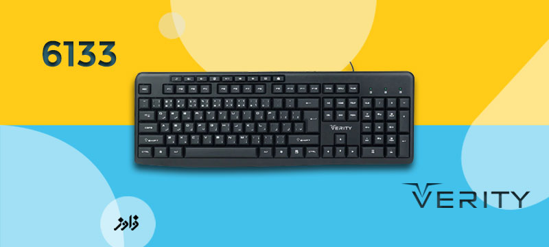 کیبورد سیم دار VERITY مدل 6133 دارای طراحی زیبا و جذاب و درعینحال ارگونومیک است که میتواند برای مصارف خانگی و اداری گزینهی مناسبی باشد. ابعاد کیبورد 6133 440x155x25 میلی متر و طول کابل آن 1500 میلی متر می باشد . تعداد کلیدهای این کیبورد 104 عدد و عمر آن 8.000.000 بار می باشد.