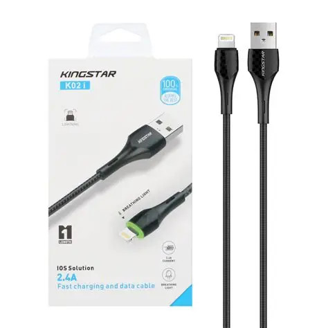 کابل K02 i کینگ استار: کابل لایتنینگ کابلی انحصاری برای شارژ و انتقال داده ها در دستگاه های اپل می باشد. این کابل جایگزین کابل های شارژ قدیمی یا همان کابل و کانکتور 30 پین شده است. این پورت منحصر به خود اپل می باشد و دستگاه های آیفون 5 به بعد، آیپد مینی 1، 2 و 3، آیپد ایر 1 و 2 و آیپاد تاچ نسل 5 به بعد را پشتیبانی می کند. از کابل لایتنینگ اپل می توان برای اتصال به لپ تاپ، کامپیوتر، رابط شارژ دیواری، رابط شارژ رومیزی، دوربین های دیجیتال و…استفاده نمود. نحوه ی عملکرد این کابل مانند کابل میکرو USB است و تنها تفاوت آن پشتیبانی از دستگاه های آیفون و آیپاد و آیپد است و شامل گوشی های اندروید نمی شود. یکی از مهمترین قابلیت های این کابل این می باشد که برای اتصال کانکتور به آیفون و آیپد جهت وارد کردن مهم نیست و کابل شارژر آنها دو طرفه است، یعنی هم از بالا و هم از پایین قابلیت اتصال دارد. این موضوع به راحتی کاربر کمک کرده است و در طراحی کابل لایتنینگ دو طرف کابل 16 پین با نظمی مخصوص به هم وصل شده اند. کابل لایتنینگ توانایی شارژ همزمان گوشی یا تبلت و انتقال اطلاعات و داده ها را نیز دارد. همچین این تکنولوژی امکان پردازش دیجیتال و سیگنال آنالوگ (مانند صدا) را نیز دارد. به نظر می رسد تبدیل اپل به برندی لاکچری بی دلیل نیز نیست، چرا که این برند همیشه راهی را برای متقاعد کردن کاربران خود قرار داده است. بدیهی است که کابل لایتنینگ نیاز شما به یک کابل استاندارد را به خوبی برطرف کرده است. اگر از محصولات اپل استفاده میکنید و قصد تهیه کابل برای انتقال و شارژ محصولات اپل را دارید، کابل تبدیل USB به لایتنینگ کینگ استار مدل k02i طول 110 سانتی متر گزینه مناسبی است. این مدل پوشش کنفی آن رشتههای داخل کابل را در برابر قطعشدن براثر کشیدن، خم شدن و گره خوردن مقاوم کرده است؛ کانکتورهای بهکار رفته در این کابل هم بسیار مقاوم هستند. در یک سمت این کابل یک کانکتور لایتنینگ و در سمت دیگر آن یک کانکتور USB وجود دارد. بهگفتهی شرکت سازنده، شدت جریان عبوری این کابل 2.4 آمپر است.